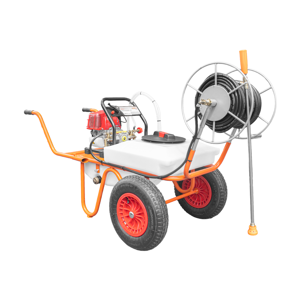 La Carretilla Sulfatadora 50L BRICOFERR es un equipo eficiente y versátil, ideal para pulverización agrícola e industrial. Equipado con un motor de 4 tiempos de 31.5cc, bomba de 20 bar y un depósito de 50 litros, ofrece un alto rendimiento y gran autonomía. Cuenta con dos ruedas para transporte estable y fácil movimiento, además de una manguera de 50 metros con enrollador, garantizando mayor alcance y practicidad. Incluye una lanza de pulverización de 90 cm para una aplicación precisa y uniforme.