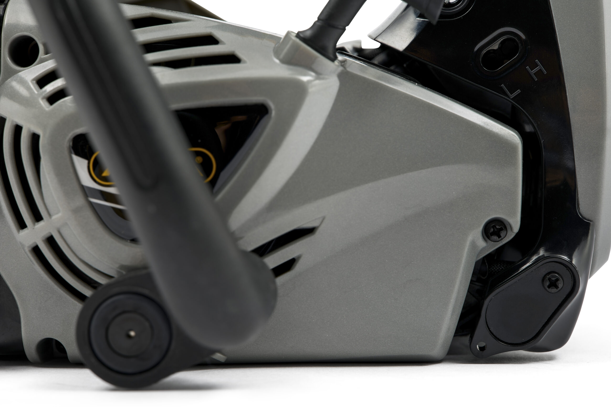El freno de cadena se activa manualmente o por la inercia y provoca una parada rápida, algo muy tranquilizador para la seguridad del usuario. Además, hay un conjunto de resortes para absorber impactos y zonas de amortiguación calculadas minuciosamente; todo ello minimiza el nivel de vibración soportado por brazos y manos.